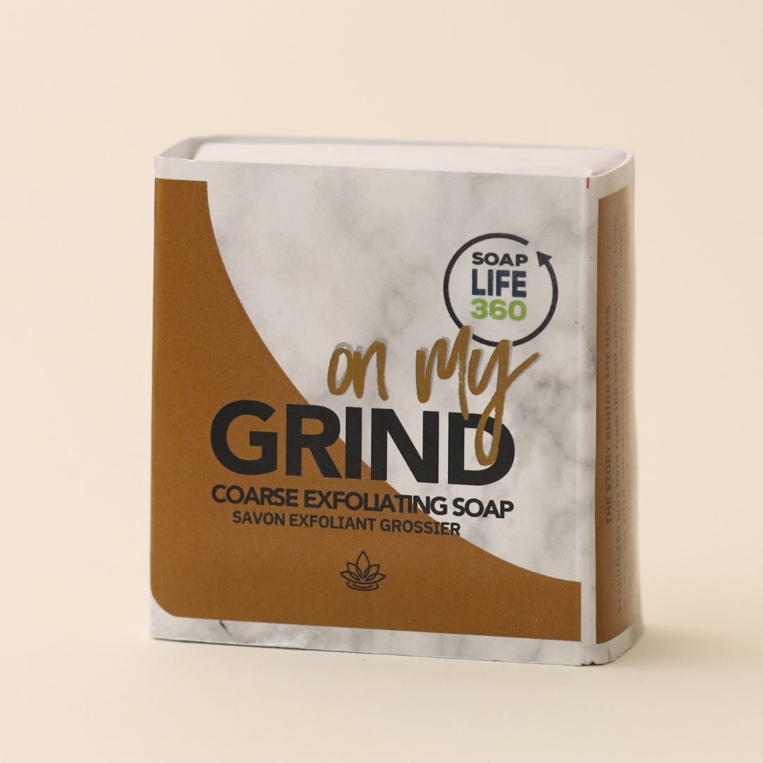 コーヒースクラブソープで、五感を目覚めさせ、お肌を若返らせましょう。On My Grindは、スパのような爽快なトリートメントを楽しみたいけれど、時間がないという忙しい方のために開発された、天然成分を贅沢に配合した石鹸です。
